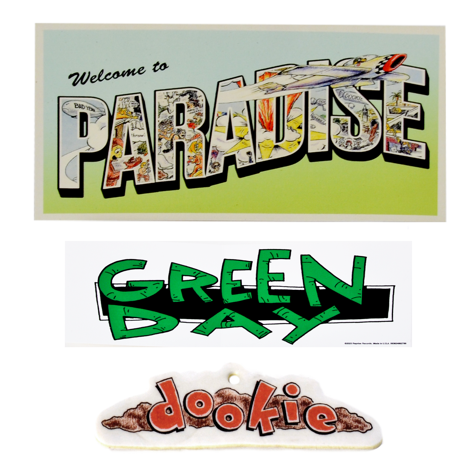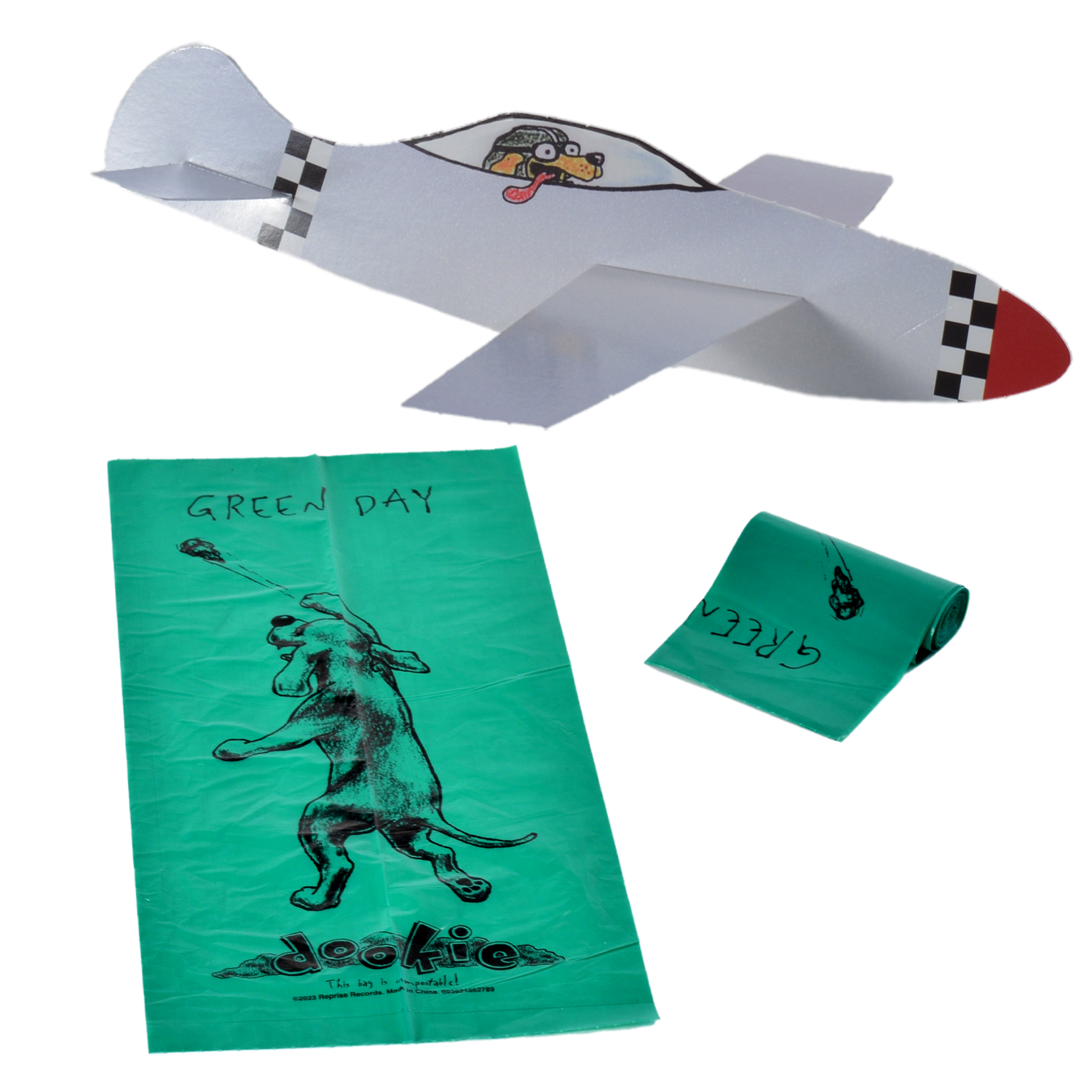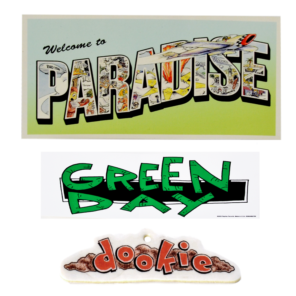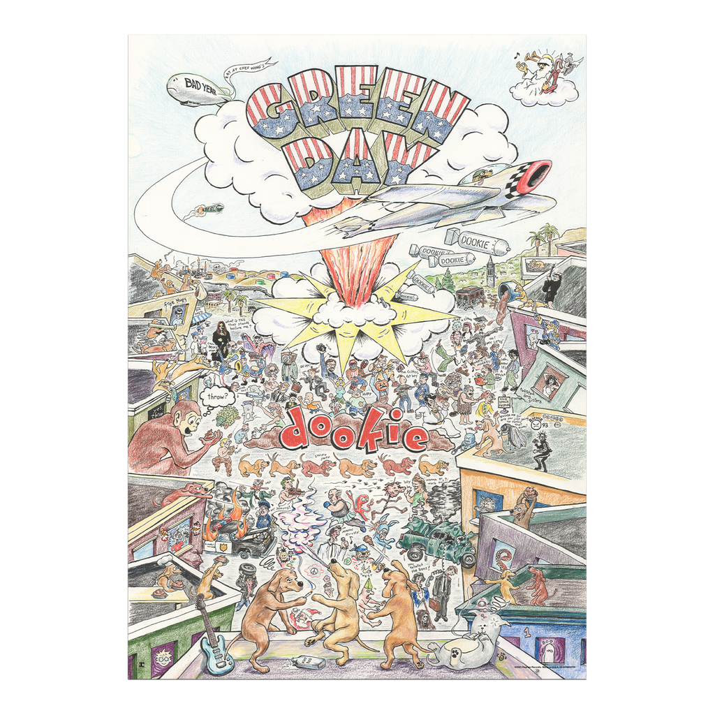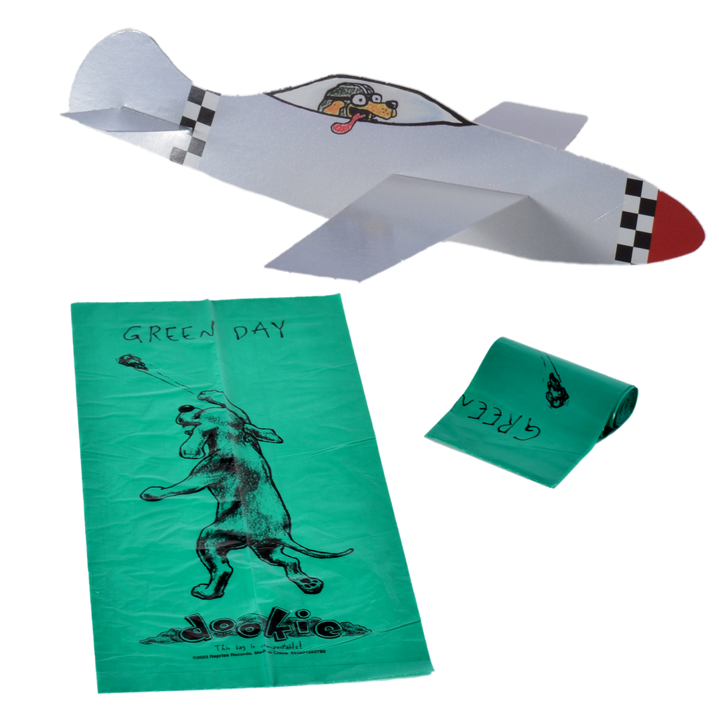 This deluxe vinyl box features the six LPs pressed on black vinyl, plus a 36-page 12” x 12” book. The box also includes many fun memorabilia items inspired by the “Dookie” artwork: Doggie Poop Bags, Air-Freshener, Poster, Color-in litho, Button Set, Magnet Sheet, Postcard, Bumper Sticker and Paper Plane.