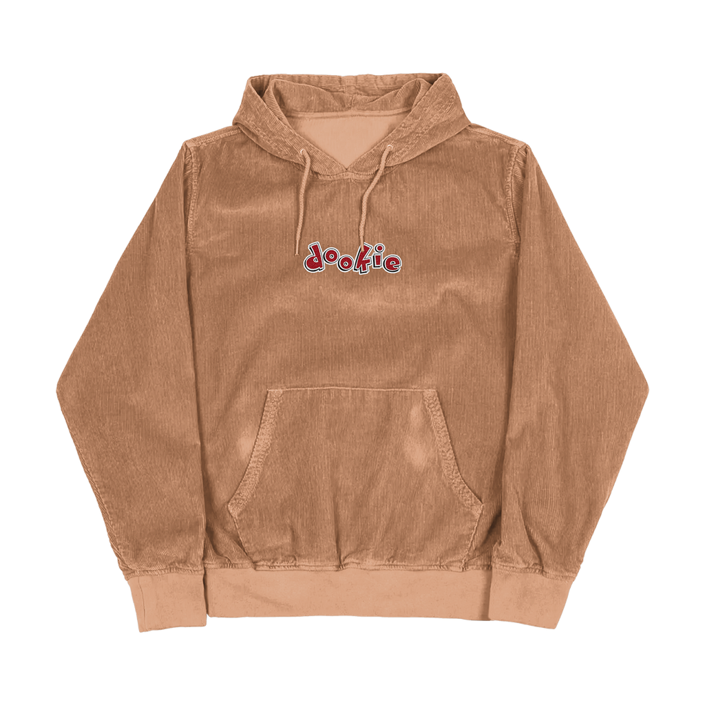 The classic dookie logo embroidered on a custom brown corduroy hoodie.
