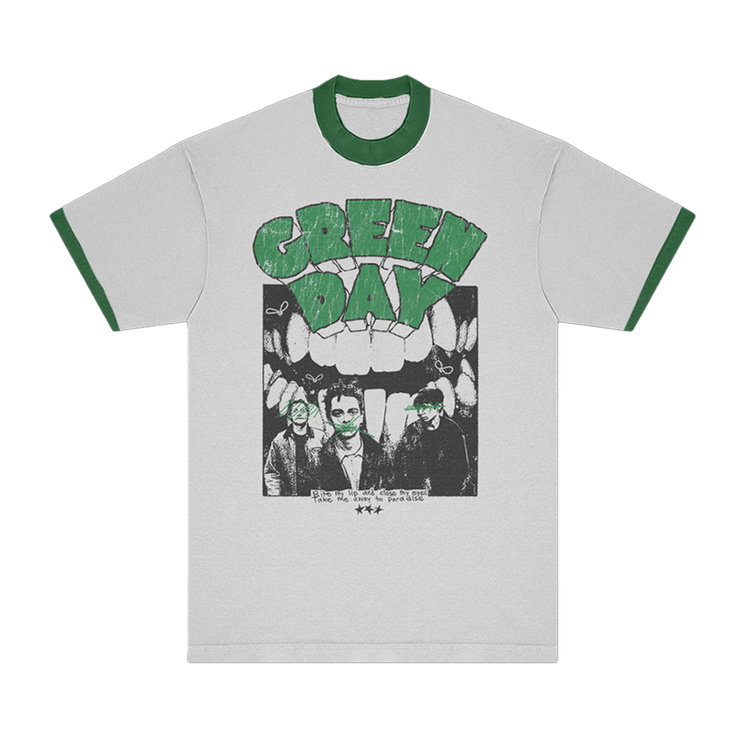 Classic Dookie-era imagery and Longview lyrics on a vintage style ringer shirt.