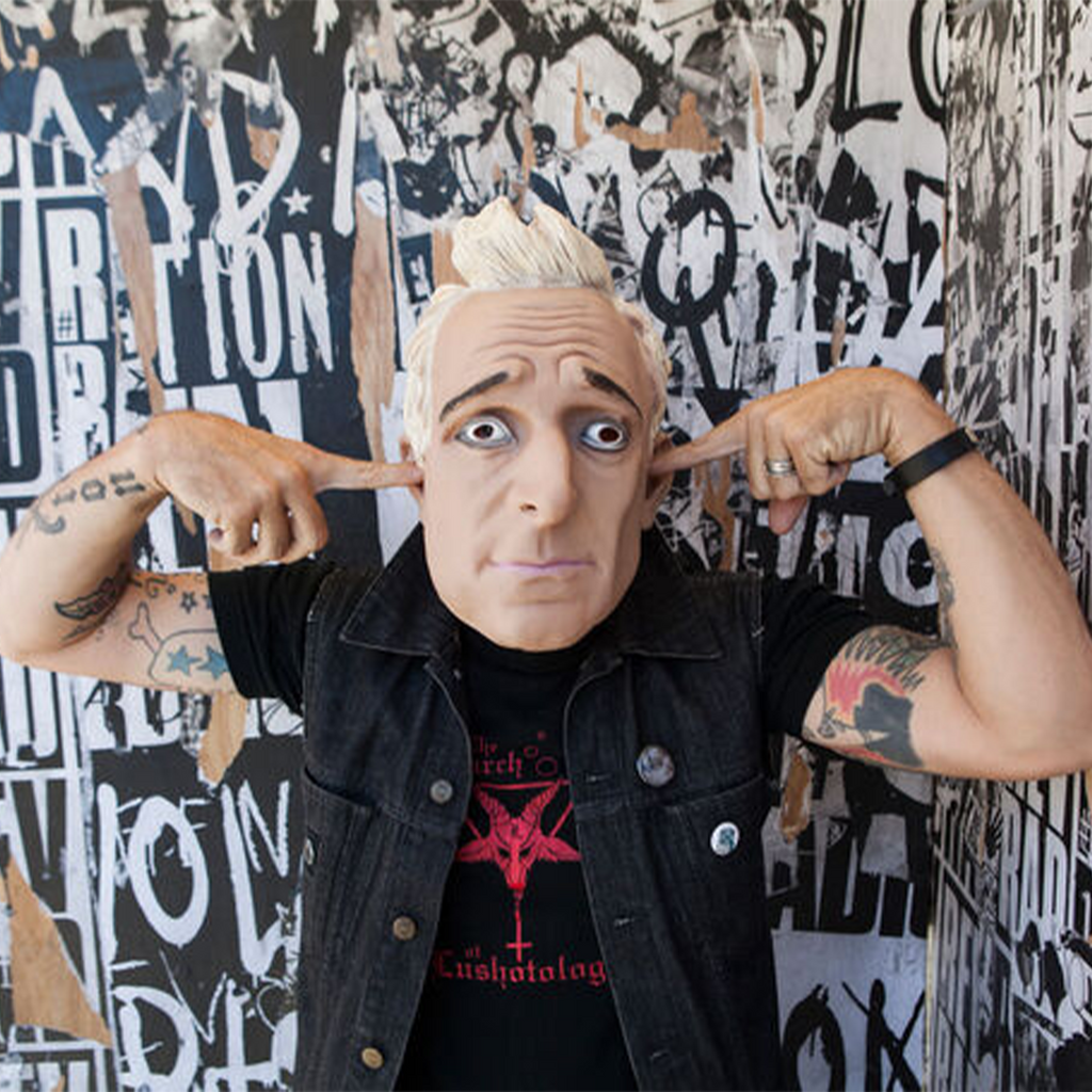 This mask will transform you into your favorite member of Green Day. The mask was sculpted to look like the Revolution Radio era version of Mike Dirnt. Made of PVC.