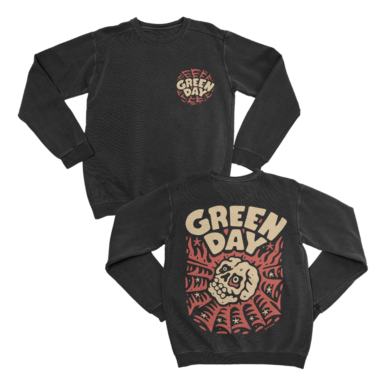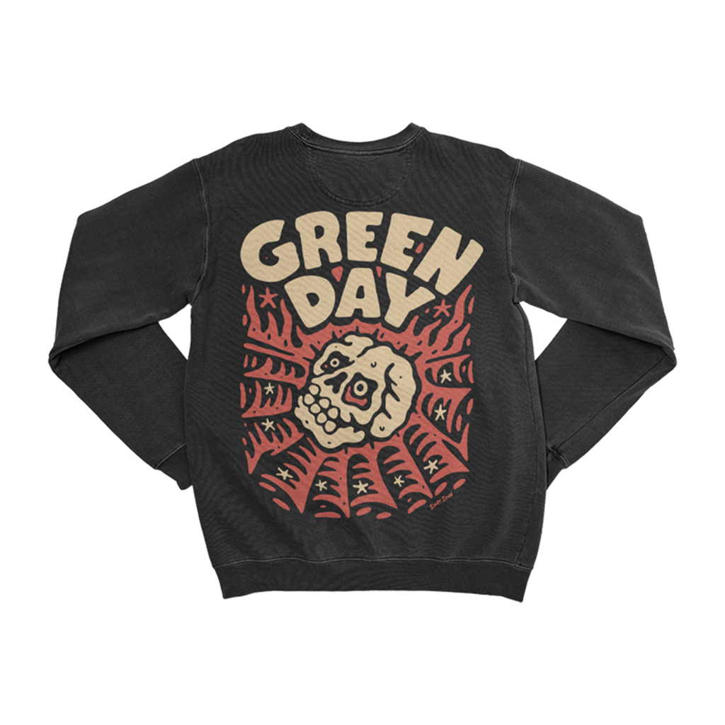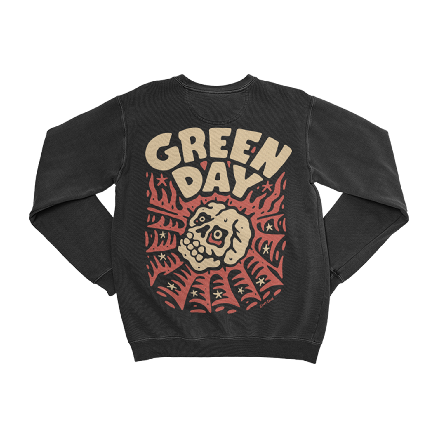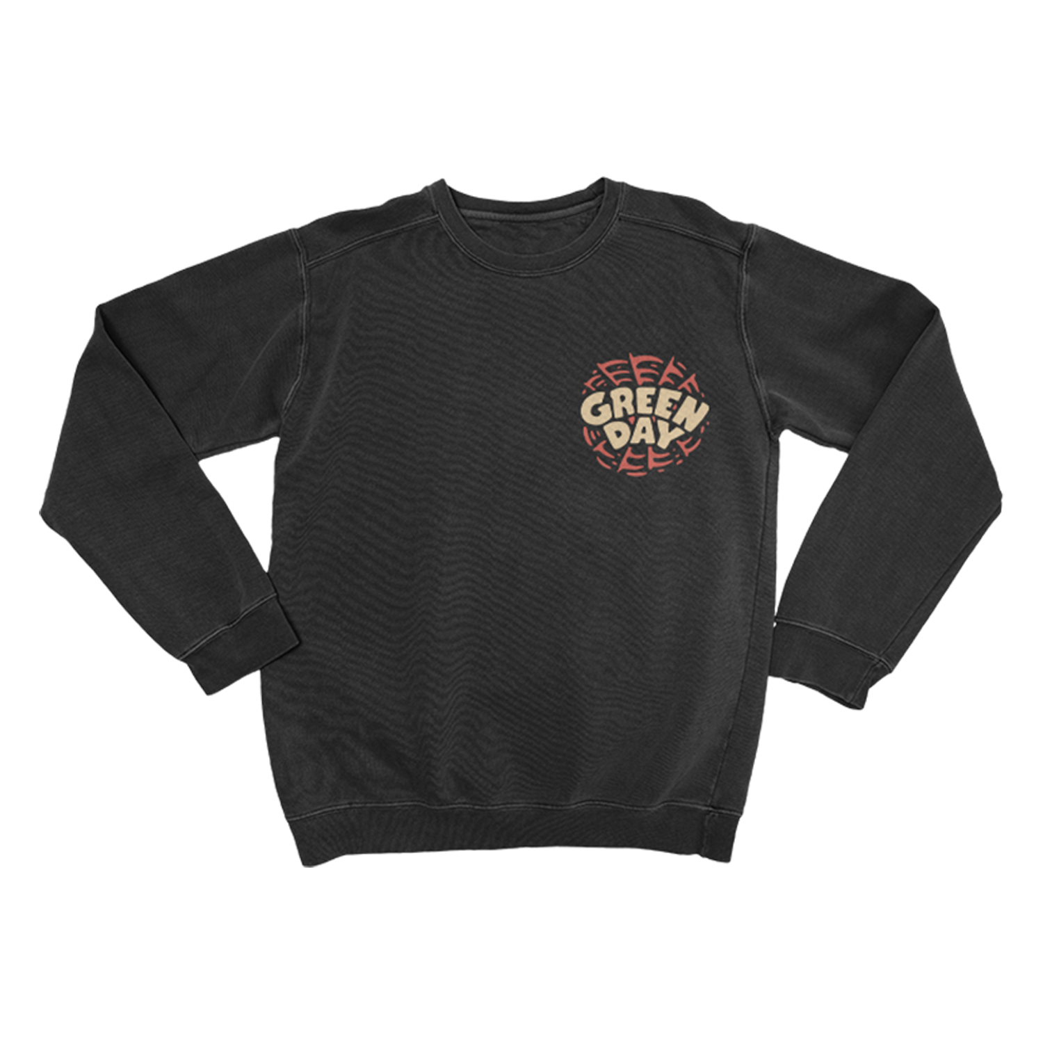 Printed on a cotton/polyester fleece black crewneck sweatshirt.